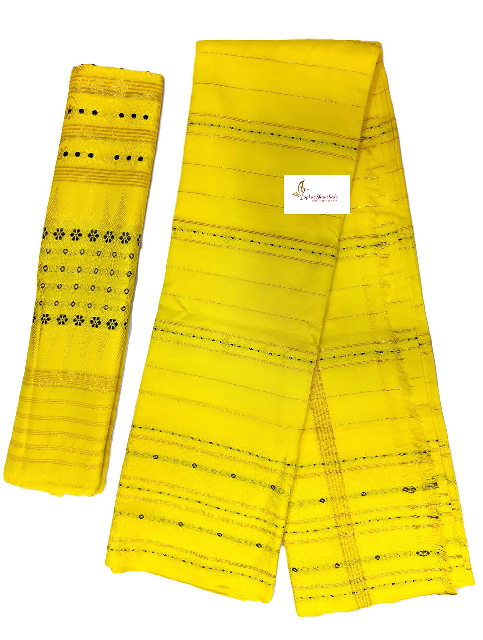 Yellow Padmini Handloom Dokhona with Yellow Black Flower by Lophai